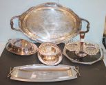 413 24" Silverplate Oval Tray other trays, dip dish.