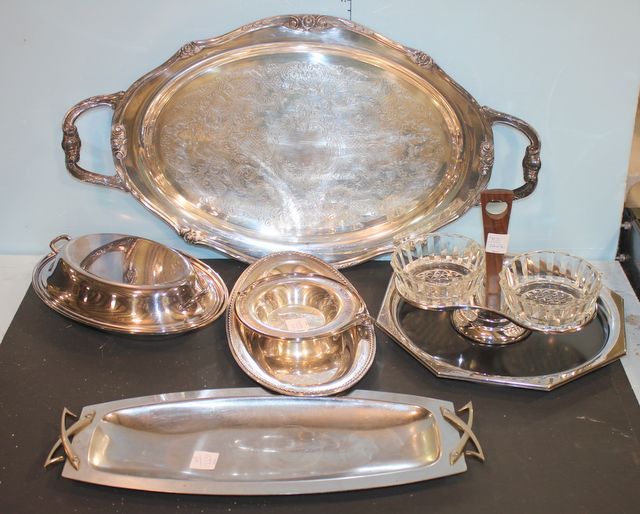 24" Silverplate Oval Tray other trays, dip dish. 24" Silverplate Oval Tray other trays, dip dish.