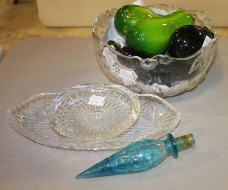 440 Val St. Lambert Glass Ashtray, Relish Dish, Decanter Stopper, Glass Bowl with Glass Fruit Val St. Lambert Glass Ashtray, Relish Dish, Decanter Stopper, Glass Bowl with Glass Fruit
