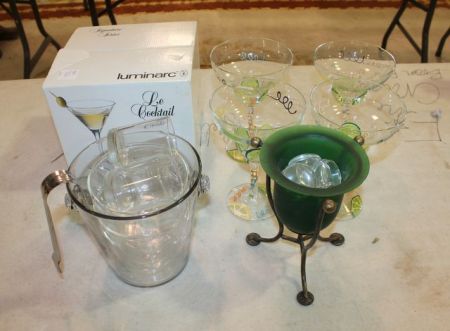 501 Ice Bucket, Champagne Glasses and Vase in Stand Ice Bucket, Champagne Glasses and Vase in Stand