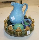 502 Ceramic Dish with Frogs, Pitcher, Snail, Vase, and Pail Ceramic 9"dia. Dish with frogs, pitcher, snail, 3" vase, 3" pail