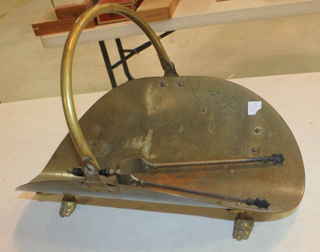 510 Brass Magazine Holder and Fireplace Tongs 17"h.
