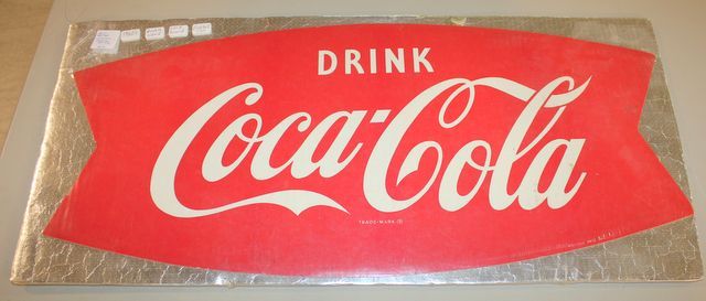 1960's Double Sided Card Board Fishtail Sign 24"w., 11"h. 1960's Double Sided Card Board Fishtail Sign 24"w., 11"h.