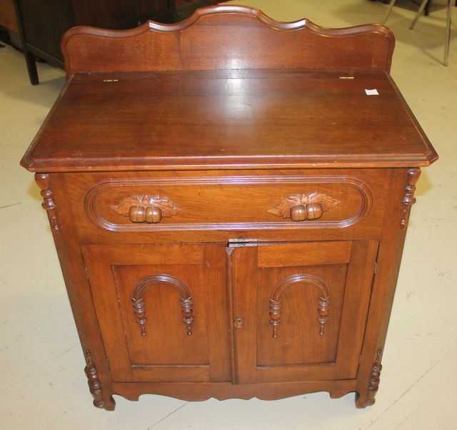 537 Walnut Victorian lift Top Washstand with two bottom doors, 29"w., 17"d., 34"h.