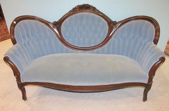 Victorian Style Sofa Rose carving, crest is broken, 68"w., 40"h. Victorian Style Sofa Rose carving, crest is broken, 68"w., 40"h.