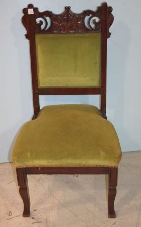 651 Mahogany Victorian Parlor Side Chair green upholstery, 38"h.