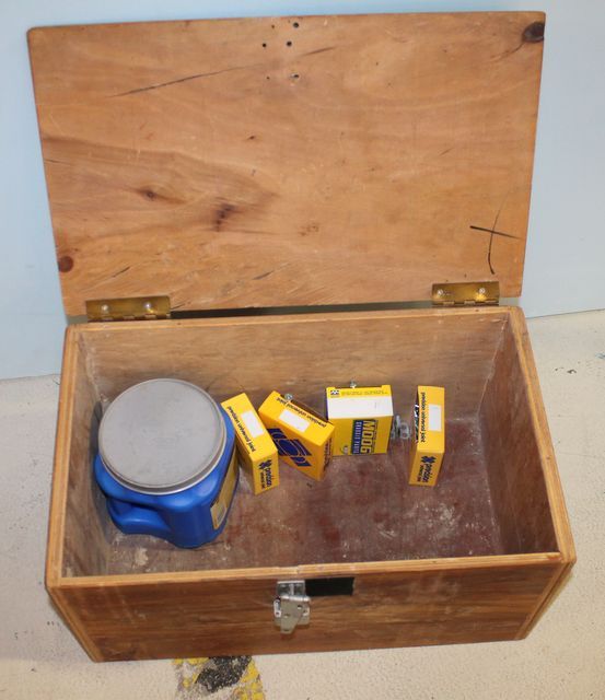 Wood Trunks with boxes of new screws, 21"w., 13"d., 11"H. Wood Trunks with boxes of new screws, 21"w., 13"d., 11"H.
