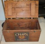 661 Wood Trunk Advertising Chaps Ralph Lauren, 36"w., 18"d., 18"h.