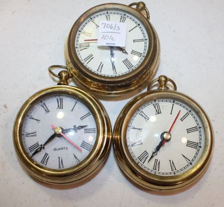 Three Made in India Brass Clocks 3"dia. Three Made in India Brass Clocks 3"dia.