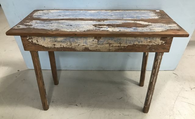 Antique primitive distressed table, waxed finish, sturdy, good condition, 27"h., 40"w., 18"d. Antique primitive distressed table, waxed finish, sturdy, good condition, 27"h., 40"w., 18"d.