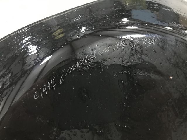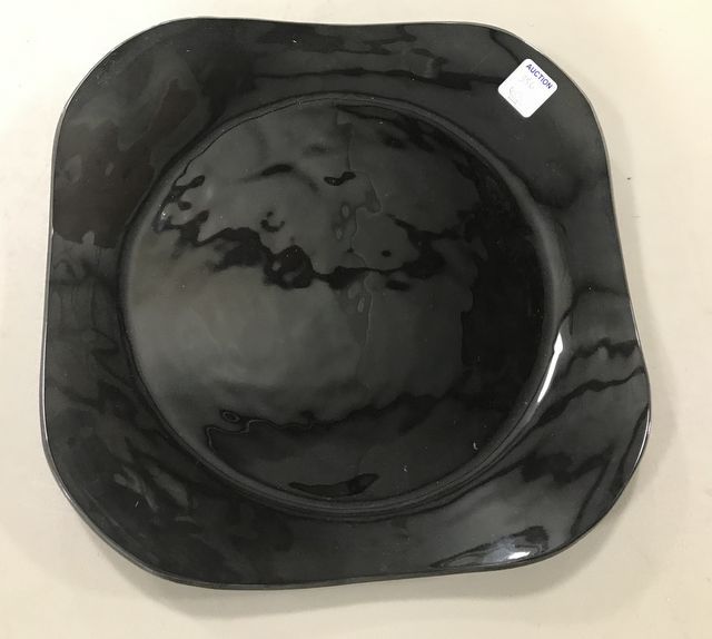 1997 Annie Glass USA, black glass tray, is signed on bottom, 12"w., 14"w. 1997 Annie Glass USA, black glass tray, is signed on bottom, 12"w., 14"w.