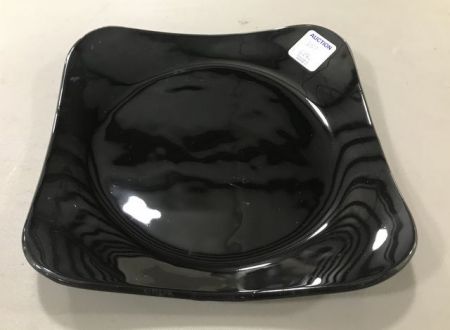 1997 Annie Glass USA, black glass dish, signed on bottom, 8"w., 10"w. 1997 Annie Glass USA, black glass dish, signed on bottom, 8"w., 10"w.