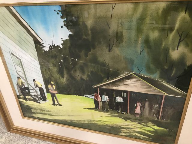 Kenneth Quinn "Sunday After Church" Watercolor 1975, framed 25"h., 30"w. Dr. Kenneth Quinn, the gifted MC art professor at Mississippi College, bachelor’s degree in art from MC in 1961 and earned a master of education in art from Illinois State University in 1964. Kenneth Quinn "Sunday After Church" Watercolor 1975, framed 25"h., 30"w. Dr. Kenneth Quinn, the gifted MC art professor at Mississippi College, bachelor’s degree in art from MC in 1961 and earned a master of education in art from Illinois State University in 1964.