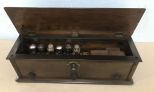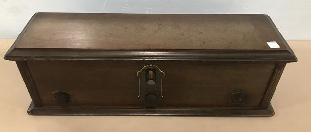 Wooden case, lift top access, needs works, New York, has all parts, needs wall plug, 9"h., 29"L., 9"w. Wooden case, lift top access, needs works, New York, has all parts, needs wall plug, 9"h., 29"L., 9"w.