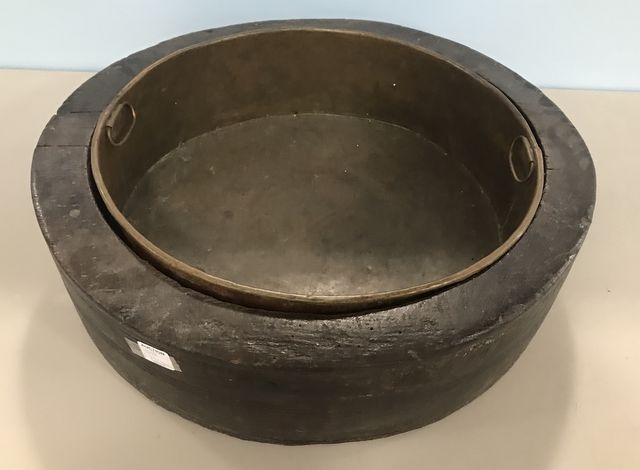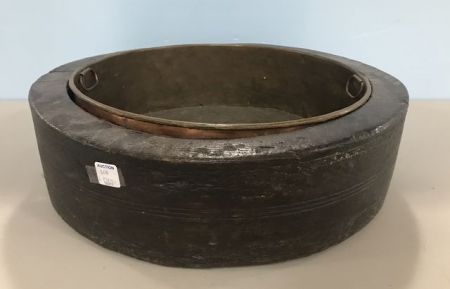 New England Primitive Cheese Wood Bowl, copper lining tray. New England Primitive Cheese Wood Bowl, copper lining tray.