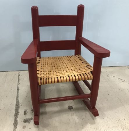 Vintage red painted child's rocker with new cane seat, 21"h. Vintage red painted child's rocker with new cane seat, 21"h.