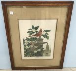 Framed, Cardinals III litho., numbered 26/1000, signed John Ruthmen, birds eye maple frame 30"h., 24"w. Framed, Cardinals III litho., numbered 26/1000, signed John Ruthmen, birds eye maple frame 30"h., 24"w.