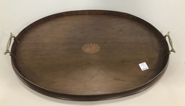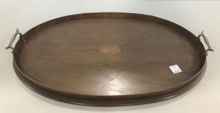 Vintage Italian Wood Serving Tray, handled, inlaid center medallion, 21"h., 14"w. Vintage Italian Wood Serving Tray, handled, inlaid center medallion, 21"h., 14"w.
