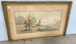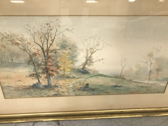 Vintage Watercolor print of landscape, signed Tamasure, framed, glass, 22"h., 36"w. Vintage Watercolor print of landscape, signed Tamasure, framed, glass, 22"h., 36"w.