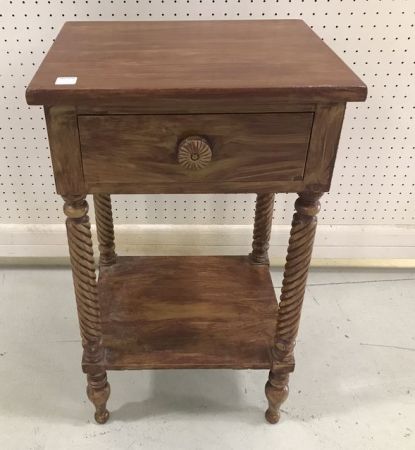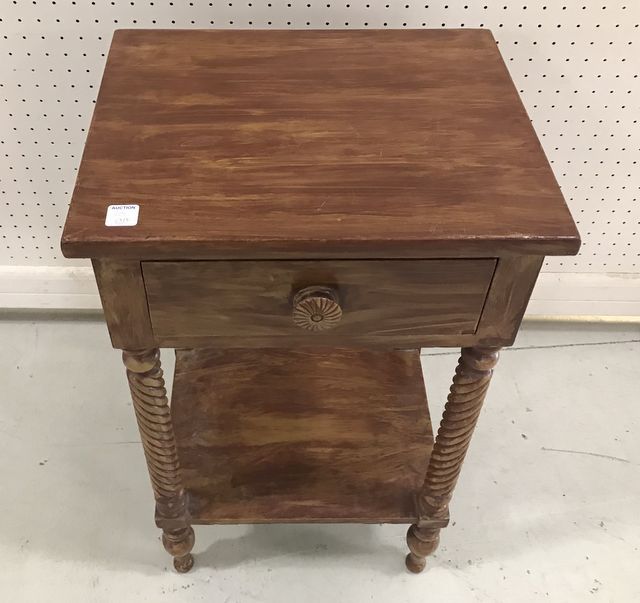 Modern painted two tier side table, one drawer, barely twist legs, 28"h., 16"w., 13"d. Modern painted two tier side table, one drawer, barely twist legs, 28"h., 16"w., 13"d.