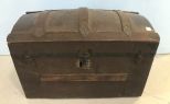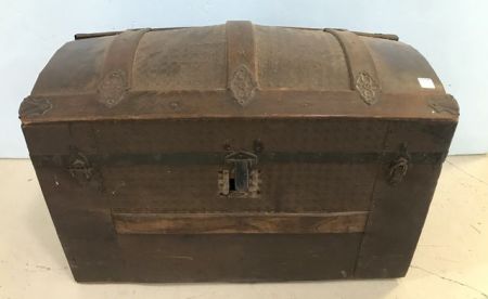 Vintage Camel Top Streamer Trunk, inner tray, no lock, no straps, tin and wood, needs refinishing, 18"h., 29"w. Vintage Camel Top Streamer Trunk, inner tray, no lock, no straps, tin and wood, needs refinishing, 18"h., 29"w.