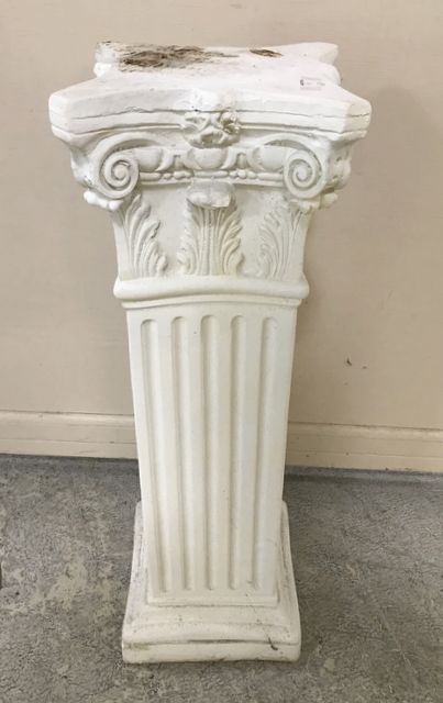 Ceramic white pedestal stand, needs cleaning, 34"h.,15"w. Ceramic white pedestal stand, needs cleaning, 34"h.,15"w.