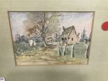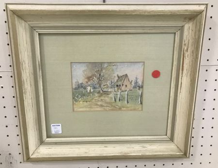 Watercolor of Delta Home by Dot Hector, 1971, framed, 15"h., 17"w. Born in Lexington, Mississippi on August 16, 1904. Mississippi Artist. Watercolor of Delta Home by Dot Hector, 1971, framed, 15"h., 17"w. Born in Lexington, Mississippi on August 16, 1904. Mississippi Artist.