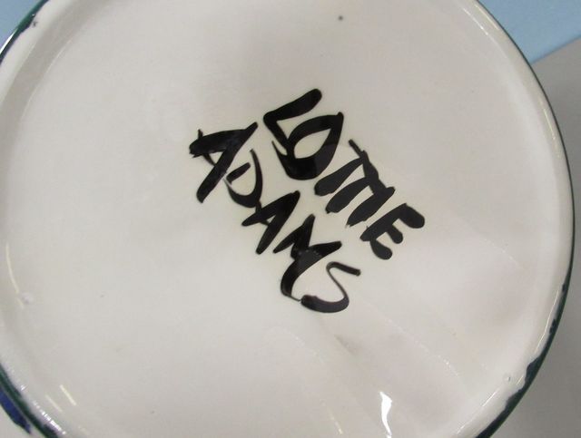 Hand painted jar signed Lottie Adams, 13"h., 7"dia. Hand painted jar signed Lottie Adams, 13"h., 7"dia.