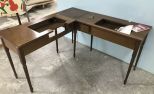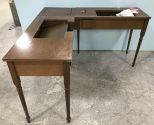 Vintage sewing machine sectional work station, 90 degree sectional, two pieces, no machines, 30"h., 76"w. Vintage sewing machine sectional work station, 90 degree sectional, two pieces, no machines, 30"h., 76"w.