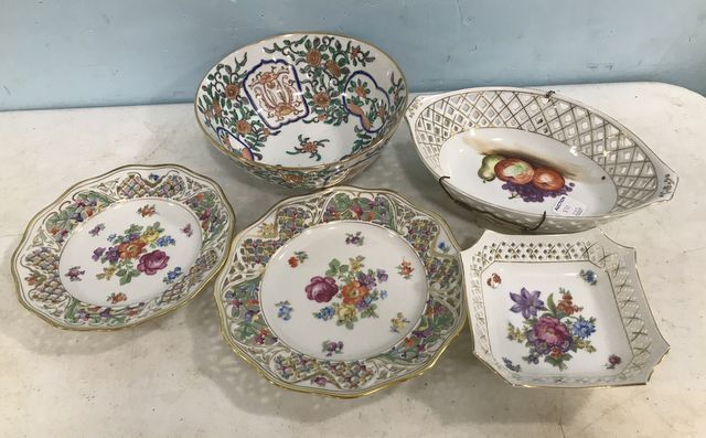 Hand painted occupied Japan bowl, occupied Japan oval bowl 10"w., hand painted Japanese porcelain ware bowl, Two Shumann Germany Chateau plate (Dresden Flowers), Hand painted occupied Japan bowl, occupied Japan oval bowl 10"w., hand painted Japanese porcelain ware bowl, Two Shumann Germany Chateau plate (Dresden Flowers),
