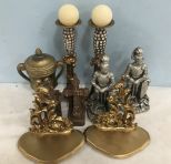 Gold gilt resin candle holders 16"h., ceramic gold painted urn, resin pair of knights, resin cross bookends, gold gilt wall shelfs. Gold gilt resin candle holders 16"h., ceramic gold painted urn, resin pair of knights, resin cross bookends, gold gilt wall shelfs.
