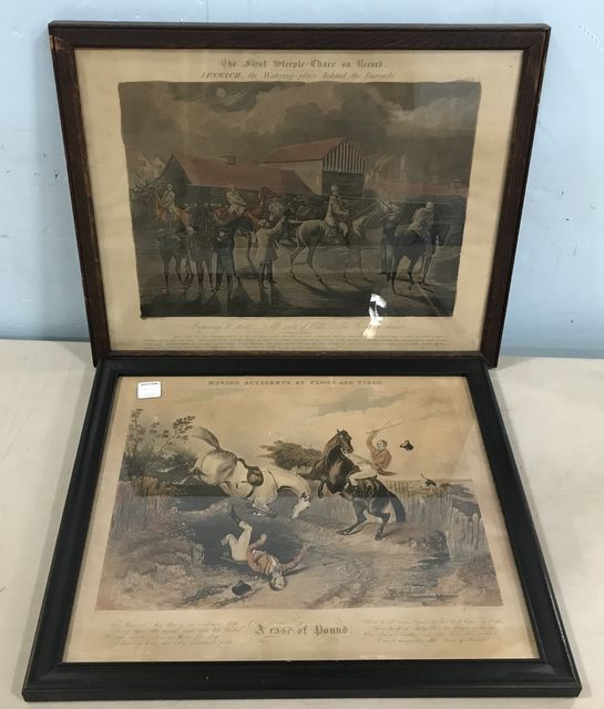 First Steeple Chase on Record "the watering place behind the barracks" print 15"h., 19"w. and Moving Accidents by Flood and Field print 16"h., 17 1/2"w. First Steeple Chase on Record "the watering place behind the barracks" print 15"h., 19"w. and Moving Accidents by Flood and Field print 16"h., 17 1/2"w.