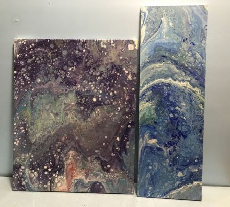Canvas 30"h., 24"w., 36"h., 12"w, multi color and designs, hand made locally by Hinton. Canvas 30"h., 24"w., 36"h., 12"w, multi color and designs, hand made locally by Hinton.