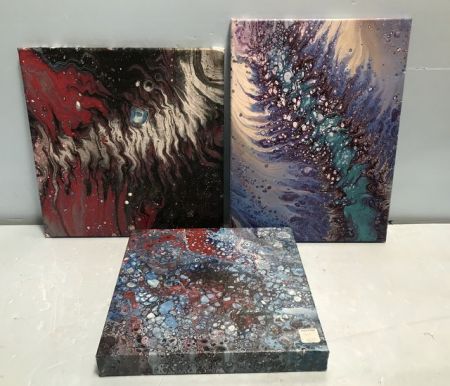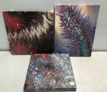 Canvas, largest 16"h., 12"w., multi color and designs, hand made locally by Hinton. Canvas, largest 16"h., 12"w., multi color and designs, hand made locally by Hinton.