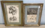 Gold gilt framed newspaper print of lady 19"h., 14"w., and gold gilt framed paper print of cupids, 21"h., 15"w. Gold gilt framed newspaper print of lady 19"h., 14"w., and gold gilt framed paper print of cupids, 21"h., 15"w.