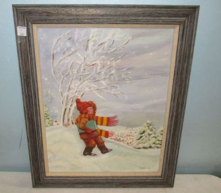 Painting on canvas, framed, 24"h., 21"w. Painting on canvas, framed, 24"h., 21"w.
