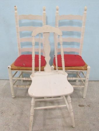 1110 Two White Ladder Back Chairs and Side Chair