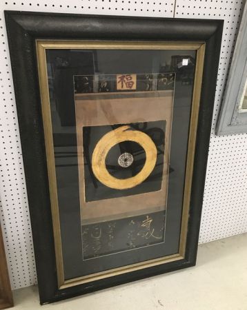Large framed oriental style artwork, modern decor, glass, 52"h., 34"w. Large framed oriental style artwork, modern decor, glass, 52"h., 34"w.