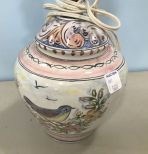 Hand painted pottery vase, flowers and bird decor, no shade, 18"h. Hand painted pottery vase, flowers and bird decor, no shade, 18"h.