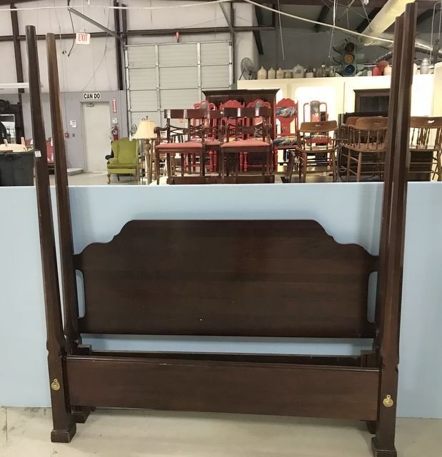 Vintage mahogany four poster partial bed with no rails or finials, has finish wear. Vintage mahogany four poster partial bed with no rails or finials, has finish wear.