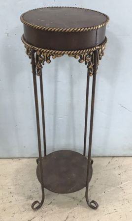Metal two tier round stand, made in china, 23"h. Metal two tier round stand, made in china, 23"h.
