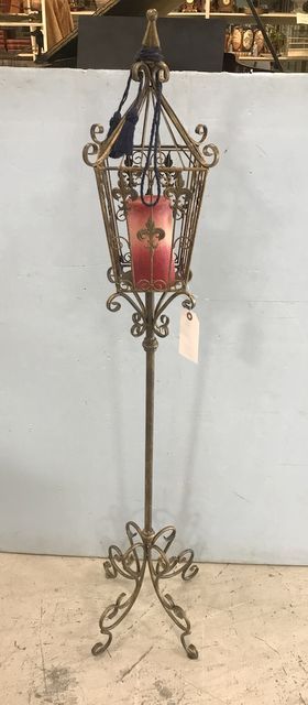 Modern gold gilt metal candle stand, 52"h. Modern gold gilt metal candle stand, 52"h.
