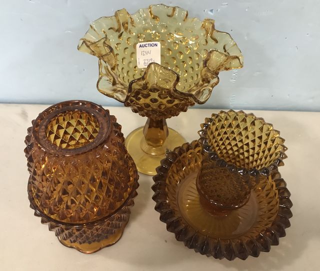 1244 Fenton Compote and Diamond Point Glass Pieces