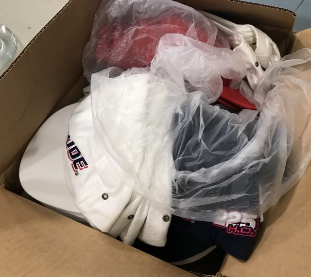 Three Evinrude H.O. trailer hitch decoration, Evinrude hitch cover, 2"inch ball, box of assorted Evinrude hats. Three Evinrude H.O. trailer hitch decoration, Evinrude hitch cover, 2"inch ball, box of assorted Evinrude hats.