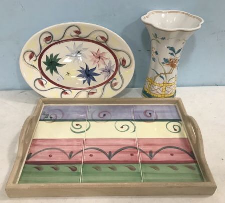 1343 Gail Pittman Tray, Platter, and Italy Vase