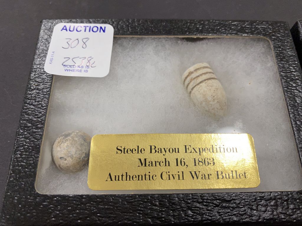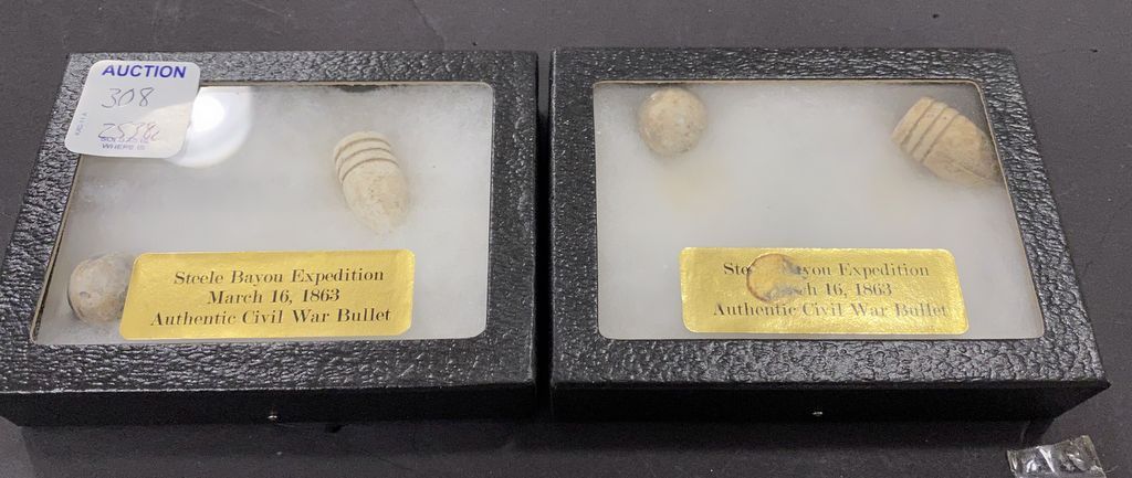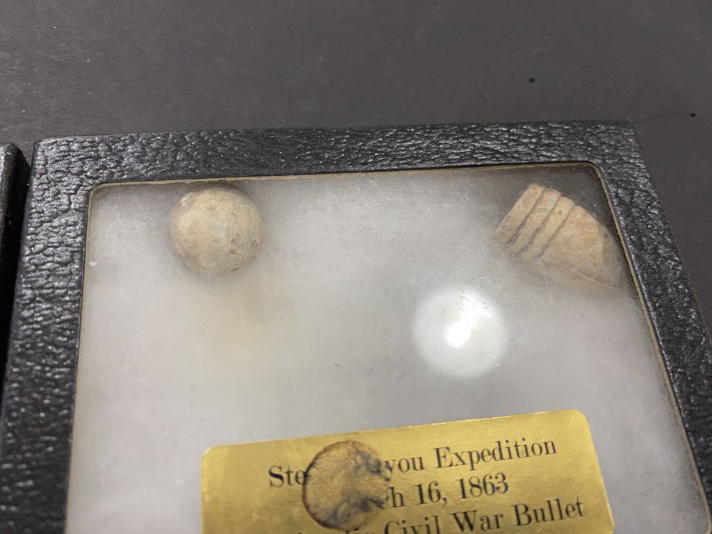 Two Steele Bayou Expedition Civil War Bullets, in case. Two Steele Bayou Expedition Civil War Bullets, in case.