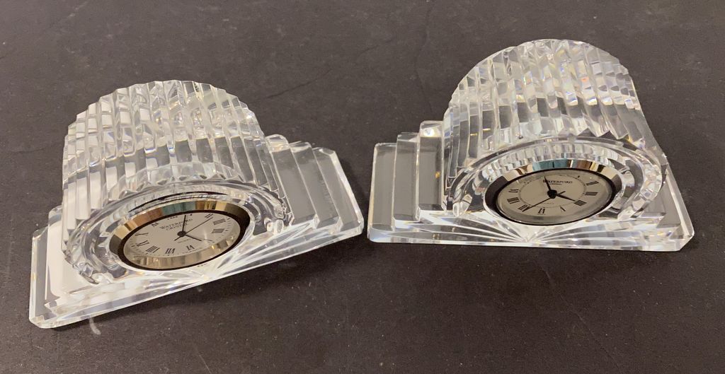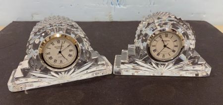 Pair of Waterford Crystal Clocks, good condition, 2 1/2"h., 4"w. Pair of Waterford Crystal Clocks, good condition, 2 1/2"h., 4"w.