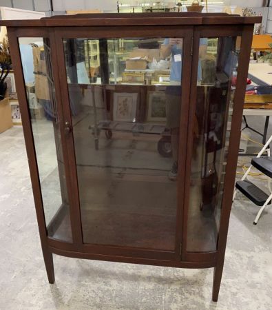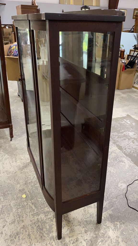 Vintage Antique Single Door China Cabinet, mahogany, mirrored back, interior shelves, 60"h., 42"w., 17"d. Vintage Antique Single Door China Cabinet, mahogany, mirrored back, interior shelves, 60"h., 42"w., 17"d.