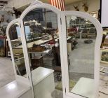 Antique Style White Painted Vanity, drop center, four drawers, tri mirror, with matching stool, 69"h., 46"w., 20"d. Antique Style White Painted Vanity, drop center, four drawers, tri mirror, with matching stool, 69"h., 46"w., 20"d.