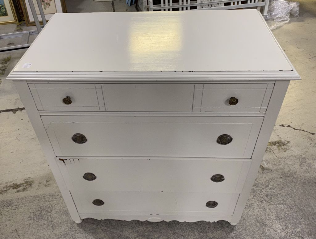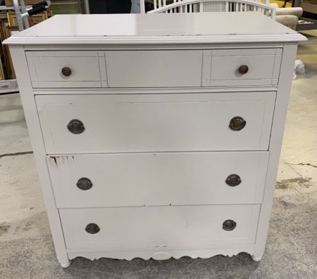 White Painted Chest of Drawers, four drawers, 36"h., 34"w., 19"d White Painted Chest of Drawers, four drawers, 36"h., 34"w., 19"d